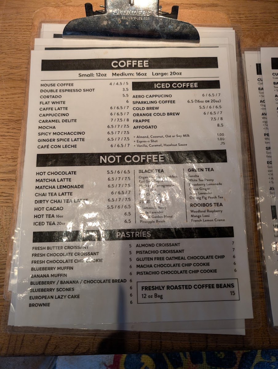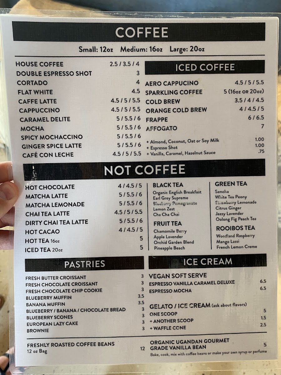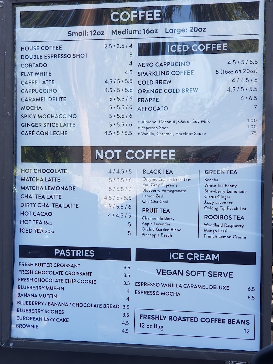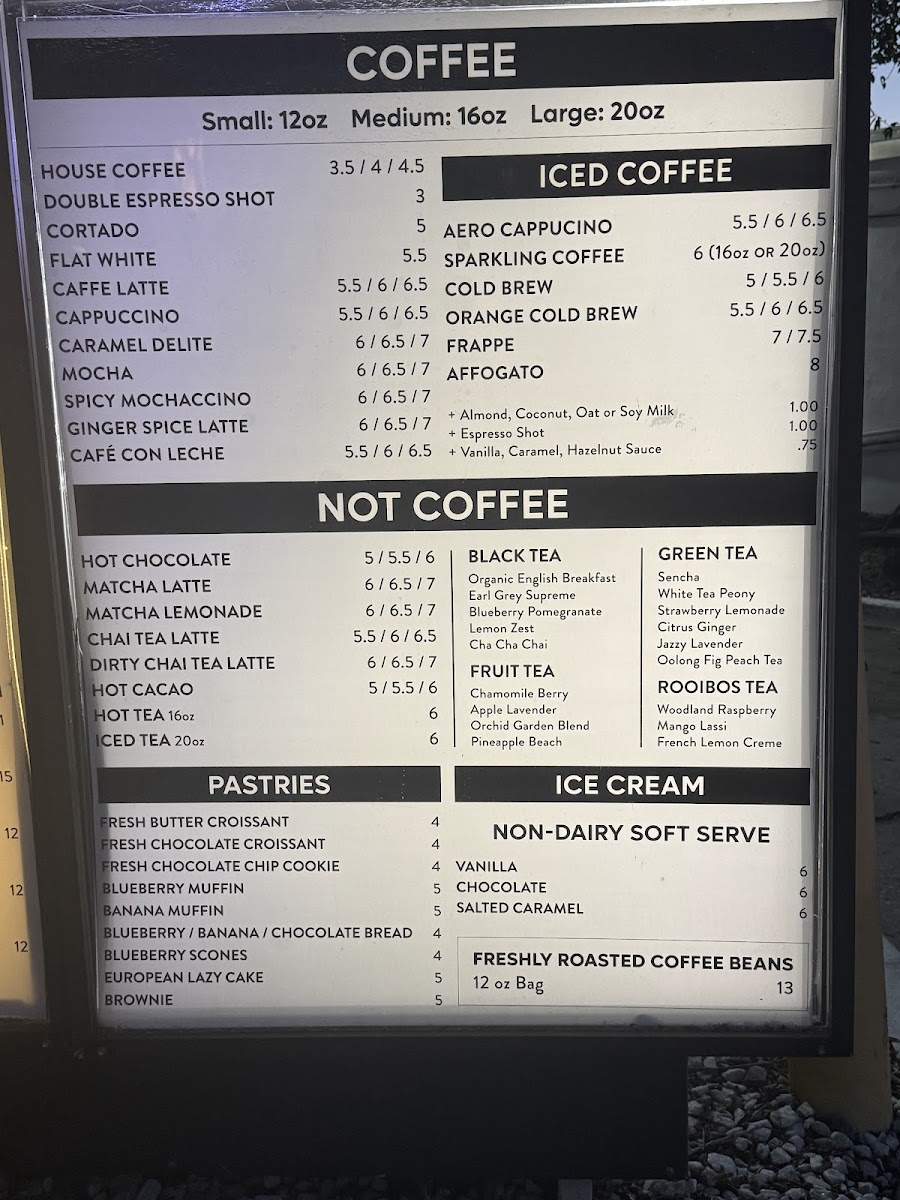 Small 12oz $5.50 / Medium 16oz $6.00 / Large 20oz $6.50.